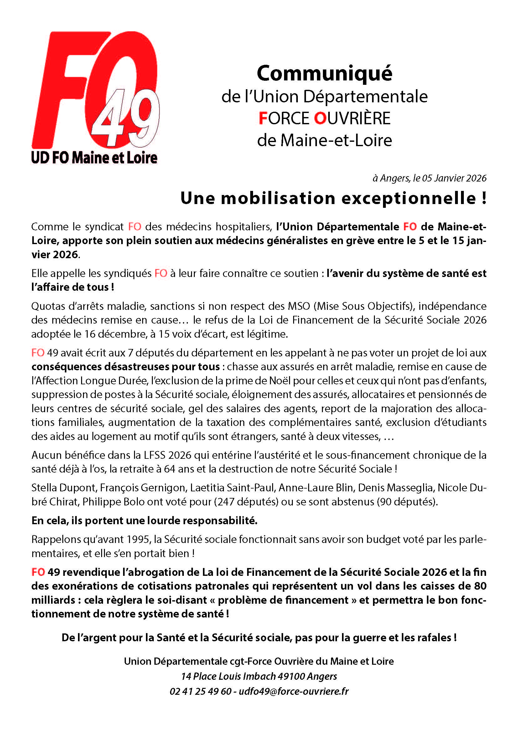 (c) : udfo 49. Reproduction interdite sauf autorisation de l'UD FO 49